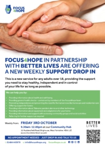 FOCUS4HOPE IN PARTNERSHIP WITH BETTER LIVES ARE OFFERING A WEEKLY SUPPORT DROP IN